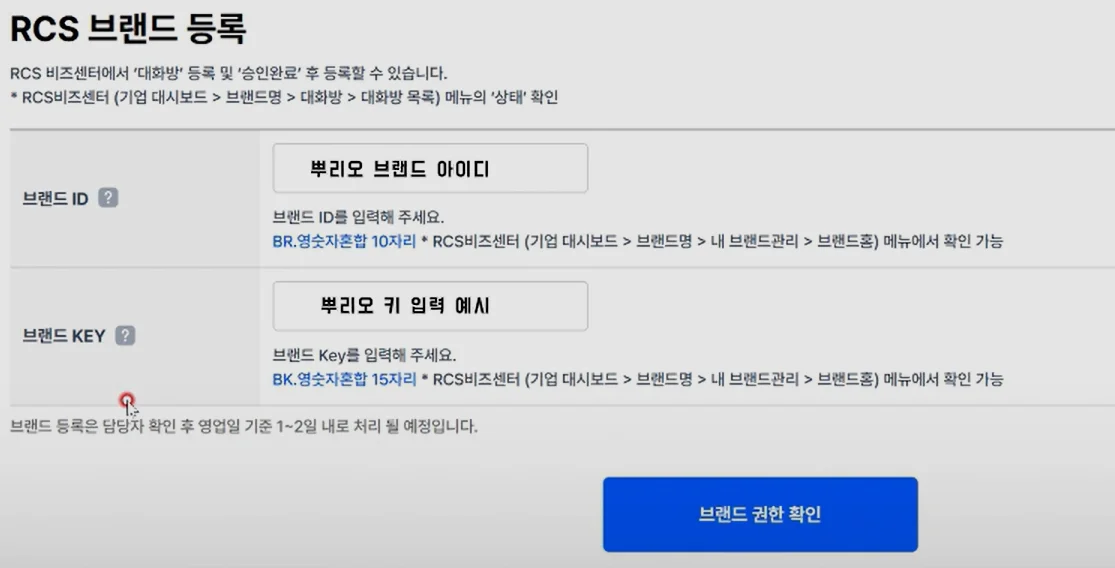 #5. 뿌리오에 RCS 브랜드 등록