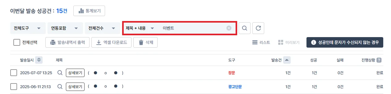 내가 원하는 조건으로 발송결과 검색하기 🔍