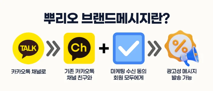 기존 친구톡이 '채널 친구'에게만 보낼 수 있었다면, 브랜드메시지는 광고 수신 동의를 한 고객이라면 채널 친구가 아니어도 메시지를 보낼 수 있다는 차별점이 있죠.