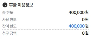 ex > 잔액 10만원 보유 + 후불 한도 40만원 = 총 50만원 서비스 이용 가능!