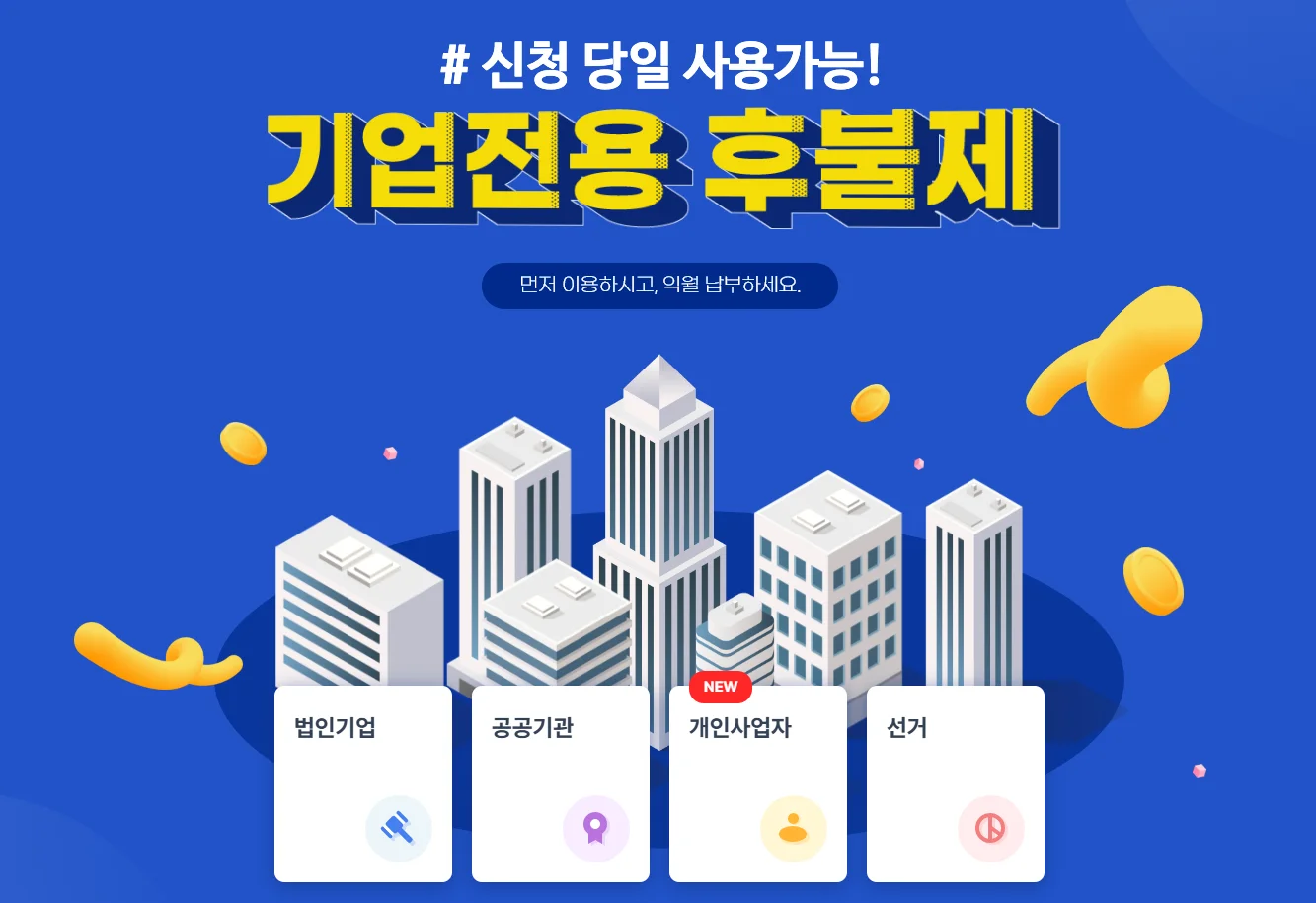 오늘은 기업전용 후불제 서비스 소개와 이용 방법을 소개해 드릴게요!