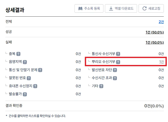 * 즉, 수신거부 대상이더라도 [일반문자] 발송은 차단되지 않습니다.