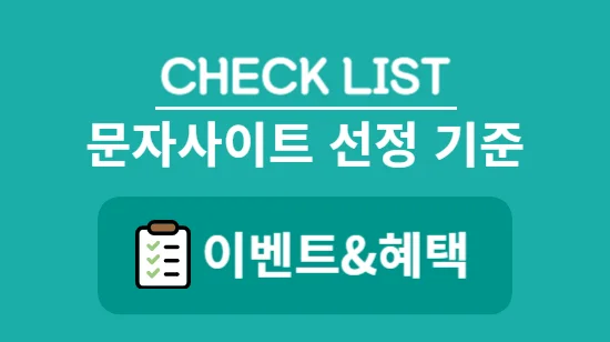 하지만, 대부분의 서비스, 특히 저가형 문자사이트의 경우 아무런 혜택을 제공하지 않는 경우가 많으므로 당장의 저렴한 가격에 끌려가기 보다는 서비스를 이용하며 받을 수 있는 혜택의 총 합을 계산해보아야 합니다.