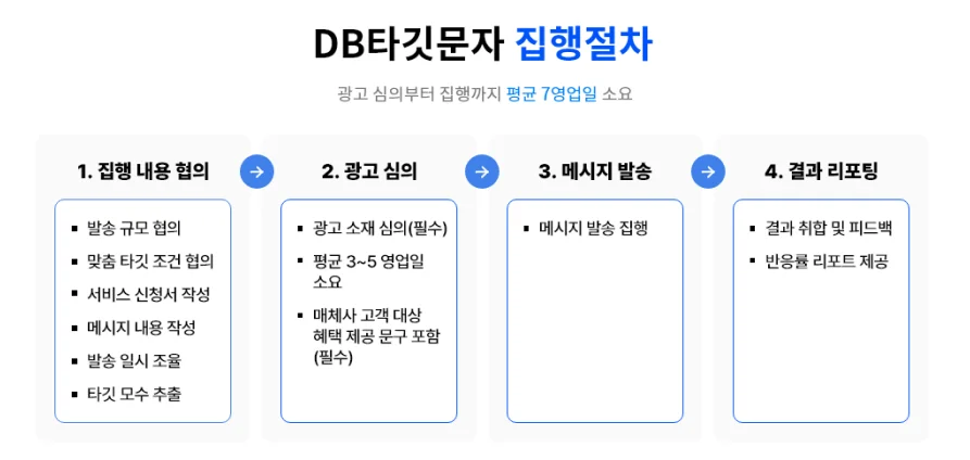 (3) 접수가 완료되면 아래와 같은 절차로 [DB타깃문자] 서비스가 집행됩니다.