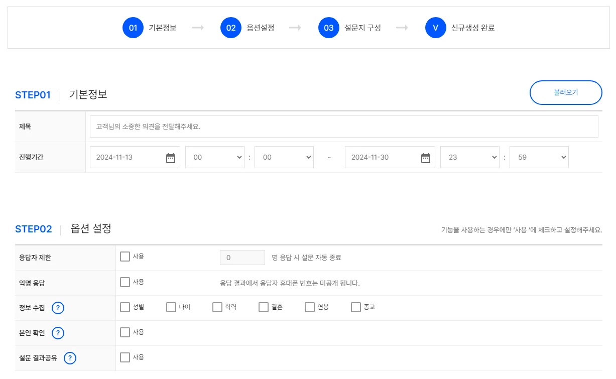 STEP 01. 설문생성 :