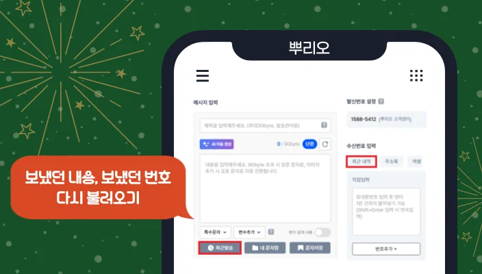 기존 발송했던 '메시지 내용'과 '받는사람' 불러오기