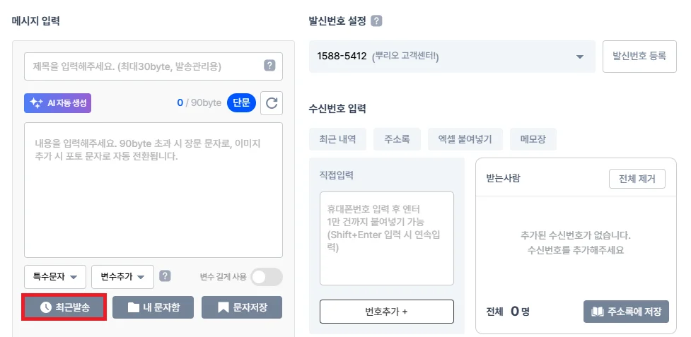 [최근발송] 기능을 통해 간단하게 메시지를 불러올 수 있습니다.
